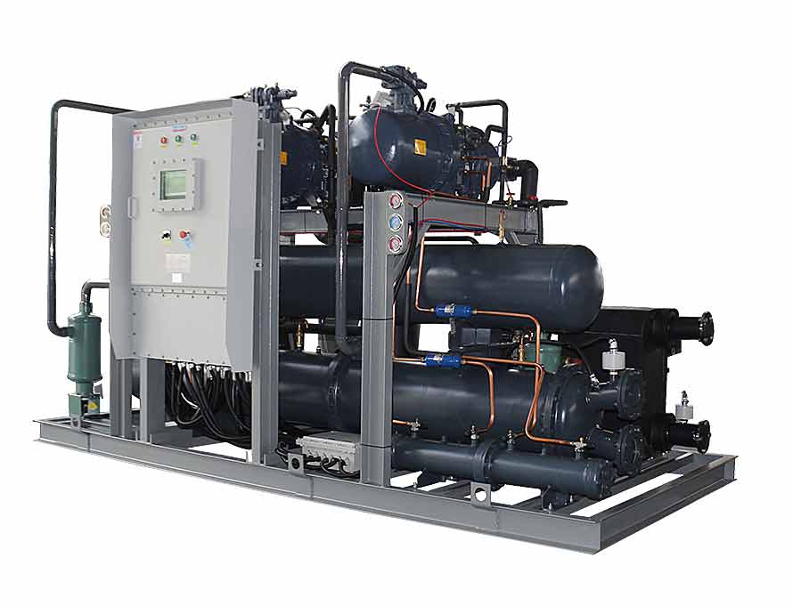 ◆螺桿復疊式低溫機組,低溫級采用螺桿壓縮機提供制冷動力源,以冷卻水塔作為冷凝介質,機組為體化設計,方便安裝和維護,機組輸出馬力從40HP-160HP,低溫出液溫度控制范圍-45℃~-70℃.