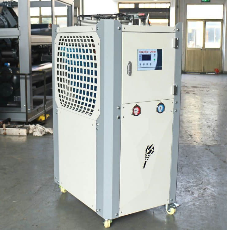 吸塑機制冷機組用于真空吸塑成型制品脫模前制件與模具接觸的內表面和外表面都冷卻,有風冷式、水冷式、螺桿式、低溫型等。風冷箱式輸出功率從1HP~50HP,風冷螺桿式輸出功率從30HP~200HP;水冷箱式輸出功率從3HP~50HP,水冷單機頭螺桿式輸出功率從30HP~280HP,水冷雙機頭螺桿式輸出功率從220HP~560HP.