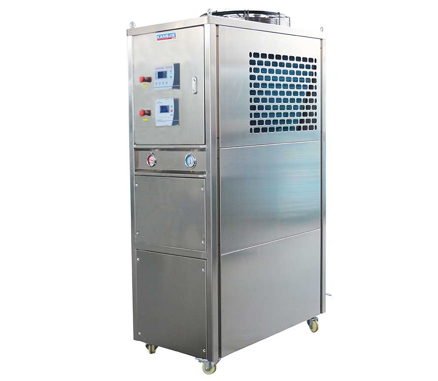 風冷式雙溫雙控制冷機組通過風扇以空氣為冷凝方式的控溫設備。